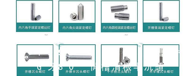 主要分類包括普通螺絲、機(jī)螺絲、自攻螺絲和膨脹螺絲三種。 有頭螺釘Cap screw 過去限于全牙的扣件。 六角頭螺釘Hex cap screw與大六角螺栓Hex bolt 顧名思義為頭部為六角型的外螺紋扣件,設(shè)計(jì)為使用扳手轉(zhuǎn)動。依照ASME B18.2.1標(biāo)準(zhǔn),六 1)開槽普通螺釘多用于較小零件的連接。它有盤頭螺釘、圓柱頭螺釘、半沉頭螺釘和沉頭螺釘。盤頭螺釘和圓柱頭螺釘?shù)尼旑^強(qiáng)度較高,瑁在普通的部件連接上;半沉頭螺釘?shù)念^部呈弧形,安裝后它的頂端略外露,且美觀光滑,一般用于儀器或精密機(jī)械