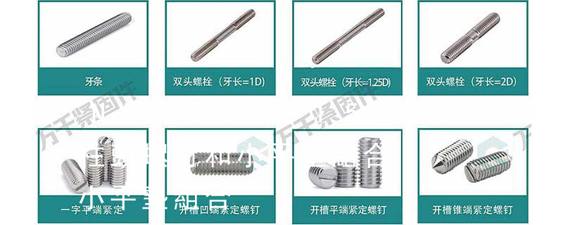 單頭螺柱 Single end studs 地腳螺栓 Masonry bolts 帶槽圓螺母 Slotted round nuts 端面帶孔圓螺母 Round nuts with drilled holes in one face 開槽平端緊定螺釘 Slotted set screws with flat point 開槽錐端緊定螺釘
