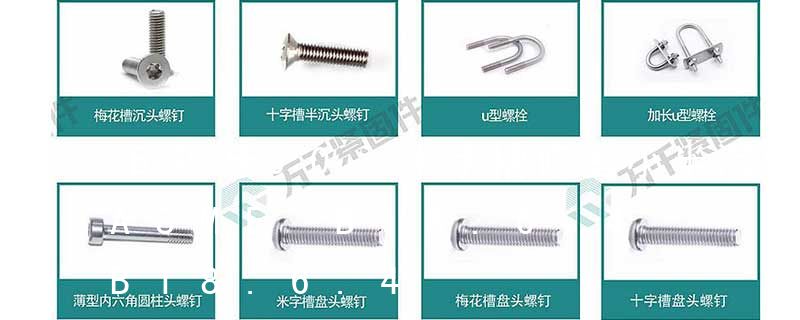 名稱: 1.機(jī)螺釘 2.自攻螺釘 3.鉆尾螺釘 4.墻板釘 5.纖維板釘 6.木螺釘7.六角木螺釘 8.不脫出螺釘 9.組合螺釘 10.微型螺釘 11.家具螺釘 12.電子螺釘 頭型: 1.六角頭(hexagon head) 2.六角頭法蘭面(hexagon head with flange) 3.方頭(square head) 4.T形頭T head (hammer head)5.扁圓頭mushroom